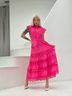 Платье представлено в стильном длинном силуэте миди с коротким рукавом, что придает ему элегантность и изысканность. Ткань из которой сшит этот наряд— приятная на ощупь натуральная, что создает ощущение легкости и комфорта. Эта одежда очарует вас своим свободным кроем и минималистичным дизайном, подчеркивая ваш индивидуальный стиль