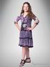Красивое платье приталенного покроя с рисунком кругов и цветов и отделкой черной кружевной тесьмой. V-образный вырез с застежкой на пуговицы, рукава 3/4 с эластичной сборкой. Размер по росту в см.