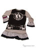 Прекрасное хлопковое платье с округлым вырезом горловины и длинными рукавами с воланами. Свободный крой. Платье украшает оригинальный принт в виде жилетки и очков. Внизу украшает платье два разноцветных волана. В этом платье маленькая модница будет неотразима!
