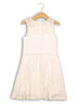 Платье для девочки приталенного кроя. Модель без рукавов с круглым вырезом горловины, застежка на молнию на спине.