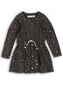 Платье приталенного кроя. Модель с длинным рукавом, круглым вырезом. Контрастный принт.