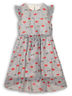 Стильное платье для девочки с круглым вырезом горловины и коротким рукавом. Пояс. Сзади застежка на пуговицу. Модель выполнена в привлекательной расцветке.