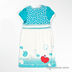 Платье из мягкого трикотажа, с рукавами-фонариками, на манжетке. По горловине и поясу украшено оборкой с декоративной отстрочкой. На подоле принт- красное яблочко.