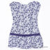Детали: округлый вырез горловины, короткий рукав-фонарик, заниженная линия талии подчеркнута контрастной имитацией пояса с тканевым бантом, принты