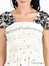 Детали: вырез "каре", короткий рукав, шифоновая вставка, лиф - многорядная резинка, принты