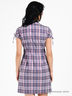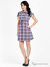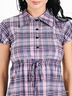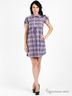 Детали: отложной ворот-стойка, застежка на четыре пуговицы на полочке, короткий рукав с кулиской, отрезной пояс с кулиской