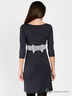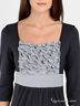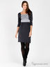 Детали: рукав 3/4; втачной пояс и вставка на полочке контрастного цвета; декорировано рюшами на полочке и бантом на поясе сзади