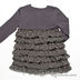Детали: округлый вырез горловины, скрытая застежка на молнию на спинке, полочка украшена паетками и вышивкой, шифоновые оборки