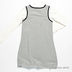 Детали: небольшой ворот-стойка, эффект двойки, юбка-баллон; полочка украшена аппликациями, стразами и сетчатым цветком