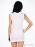 Платье прямого кроя. Круглый вырез горловины. Широкие проймы рукавов. На передней полочке аппликация, стразы и гипюровый бант.