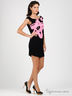 Детали: круглый вырез, без рукавов, полочка украшена ярким принтом и черными пайетками