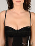 Восхитительное сексуальное платье из черной джинсы. Лиф с чашечками на косточках, Т-образным швом и Push-up прекрасно подчеркнет грудь. Съемные тонкие бретельки. Застегиваются на молнию сзади. Приталенный силуэт подчеркивает фигуру. Особый шик платью придают тюлевые вставки.