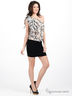 Детали: лямка на одно плечо с декоративным тканевым элементом, нижняя часть изделия - широкая трикотажная манжета, принты