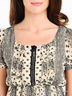 Детали: круглый вырез; короткий рукав; отрезной лиф; пояс на резинке; на полочке рюши и молния со стразами; оригинальный принт