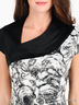 Детали: фигурный вырез; короткий рукав; застегивается на молнию сзади; оригинальный принт; сзади шлица