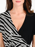 Детали: V-образный вырез; оригинальный крой с запахом; короткий рукав; контрастный принт; в комплекте яркий ремешок