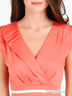Детали: V-образный вырез с запахом; короткий рукав; застегивается на молнию сбоку; втачной пояс с контрастными нашивками