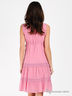 Детали: V-образный вырез; застегивается на молнию сбоку; декорирован оборками, ажурными вставками и пуговицами