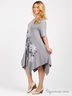 Детали: круглый вырез; короткий рукав; оригинальный крой; передняя часть декорирована аппликацией
