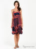 Детали: тонкие бретели регулируются по длине; отрезной лиф сзади на многорядной резинке; яркий принт; в шлевки продет пояс; низ изделия в виде оригинальных воланов