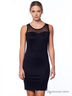 Элегантное платье облегающего кроя выполнено без рукавов, с округлым вырезом горловины. Изделие имеет застежку на молнию. Отличная модель для любой ситуации.