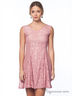 Романтичное платье с расклешенной юбкой прекрасно подойдет для особых случаев. Модель без рукавов, с округлым вырезом горловины. Изделие украшено кружевом.