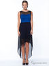 Платье актуального в этом сезоне дизайна имеет юбку ассиметричного кроя. Модель без рукавов, с округлым вырезом горловины. Отличный выбор для праздничного дня.
