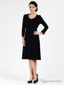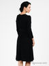 Эффектное слегка расклешенное платье из плотного, приятного на ощупь джерси. Широкий V-образный вырез горловины. Укороченные рукава. В боковых швах расположены маленькие петли, с помощью которых можно сделать декоративную шнуровку на спине лентой в цвет изделию.