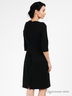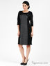Стильное платье-футляр из плотного, приятного на ощупь джерси. Широкий округлый вырез горловины. Укороченные прямые рукава. Спереди вставка из эффектной черно-белой ткани. Полочка дополнена оригинальной брошью-бантом.
