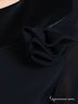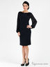 Эффектное платье из плотной, атласной ткани. Широкий округлый вырез горловины. Застежка на молнию в боковом шве. Широкие прямые рукава из тонкой, полупрозрачной ткани дополнены защипами. Горловина дополнена вставкой из плотной, атласной ткани. Платье декорировано изящным цветком-брошью.