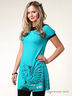 Платье-туника из вискозного полотна со сложным вырезом горловины декорировано крупным принтом по подолу.
