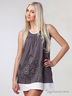 Элегантное женское платье с округлым вырезом горловины без рукавов, полочка украшена набивным принтом.