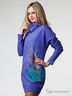 Молодежное платье – туника из футера каплеобразной формы. Длинные рукава, воротник-хомут, сбоку украшено оригинальным ярким принтом.