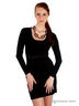 Стильное вязаное платье с длинным рукавом и глубоким вырезом горловины, приталенного покроя, на талии модель украшена декоративными камнями.