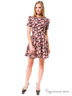 Привлекательное платье приталенного покроя с небольшим округлым вырезом горловины и короткими рукавами. Расклешенный низ изделия придает легкость и очарование, а контрастный яркий рисунок не позволит Вам остаться незамеченной.