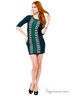 Повседневное платье приталенного силуэта. Округлый вырез горловины, рукав 3/4, полочка декорирована оригинальным рисунком. Отличный вариант для тех, кто ценит комфорт и качество.