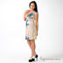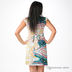 Яркое летнее платье из тонкого трикотажа. Глубокий V-образный вырез горловины. Короткий рукав. Завышенная линия талии. Юбка присборена по линии отреза. Слегка расклешенный к низу силуэт.