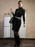 Элегантное двухстороннее платье облегающего силуэта из тонкого джерси. Ворот-стойка, длинный прямой рукав. Платье декорировано оригинальным рисунком. Великолепный офисный наряд, который можно носить в двух цветовых гаммах.