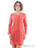 Элегантная модель платья в яркой, насыщенной расцветке. Изделие приталенного силуэта за счет пояса. Такой фасон поистине женственен, влечет за собой волну экстравагантности. Вырез горловины платья округлый, застежка на молнию на спине. Рукава длинные.