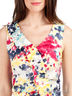 Детали: V-образный вырез горловины, лямки, скрытая застежка на молнию в левом боковом шве, передняя часть украшена рюшей, принты