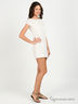 Детали: вырез лодочка; короткий рукав на резинке; верх изделия дополнен сетчатой вставкой с тканевыми цветами; низ изделия присборен на подкладку, дополнен резинкой
