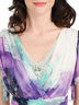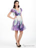 Детали: застежка на молнию на боку, широкий короткий рукав, полочка декорирована драпировкой и бусинами, пояс дополнен шелковистой лентой, от пояса выполнены складки
