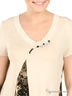 Детали: v-образный вырез горловины и низ изделия дополнены трикотажной резинкой в рубчик, изделие дополнено декоративными вставками