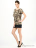Детали: короткий свободный рукав, по линии талии изделие посажено на резинку, подол - трикотаж, внутри трикотажная майка, по линии талии сборка, шлевки под ремень, декоративный ремень в виде цепочки в комплекте.