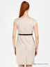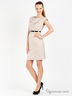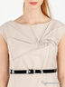 Детали: круглый вырез; отрезной лиф; застегивается на молнию сбоку; сзади шлица; в шлевки продет лаковый ремешок с металлической пряжкой; декорировано драпировкой