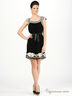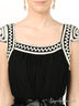 Детали: глубокий прямоугольный вырез горловины, рукав - крылышко, поверх изделия - полупрозрачная ткань, присборена у лифа, шлевки под пояс и пояс из шелковистой ткани в комплекте, изделие декорировано нашивками с оригинальным узором.