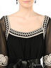 Детали: рукав 1/2 выполнен из сетчатой ткани, подол - сетчатая ткань, оригинальный дизайн, отлетная подкладка, глубокий прямоугольный вырез горловины, шлевки под ремень, ремень из отделочной ткани в комплекте, ткань у лифа присборена.