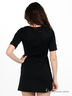 Детали: вырез горловины лодочка, рукав 1/3, к низу разрез на пуговицах на переднем полотнище юбки.