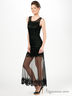 Детали: широкие лямки, круглый вырез горловины, юбка и лямки из сетчатой ткани, подол с декоративным узором, внешняя ткань - гипюр, внутри - шелковистая ткань, сбоку по шву застежка на молнии.