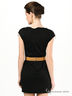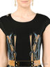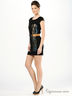 Детали: вырез горловины - лодочка, броский принт с лицевой стороны изделия, металлические молнии на плечиках, отлетная подкладка из сетчатой ткани, декоративный пояс в комплекте.